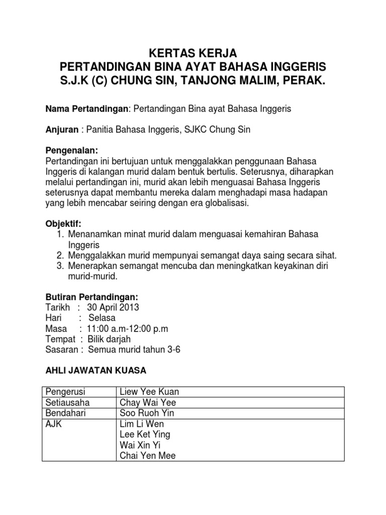 Contoh kertas kerja sukan tahunan dan laporan. Contoh ayat penutup kertas kerja contoh laporan kertas kerja projek internship. Latar belakang hendaklah mengandungi maklumat-maklumat penting untuk menjelaskan secara ringkas tetapi padat perkara-perkara yang dikemukakan.